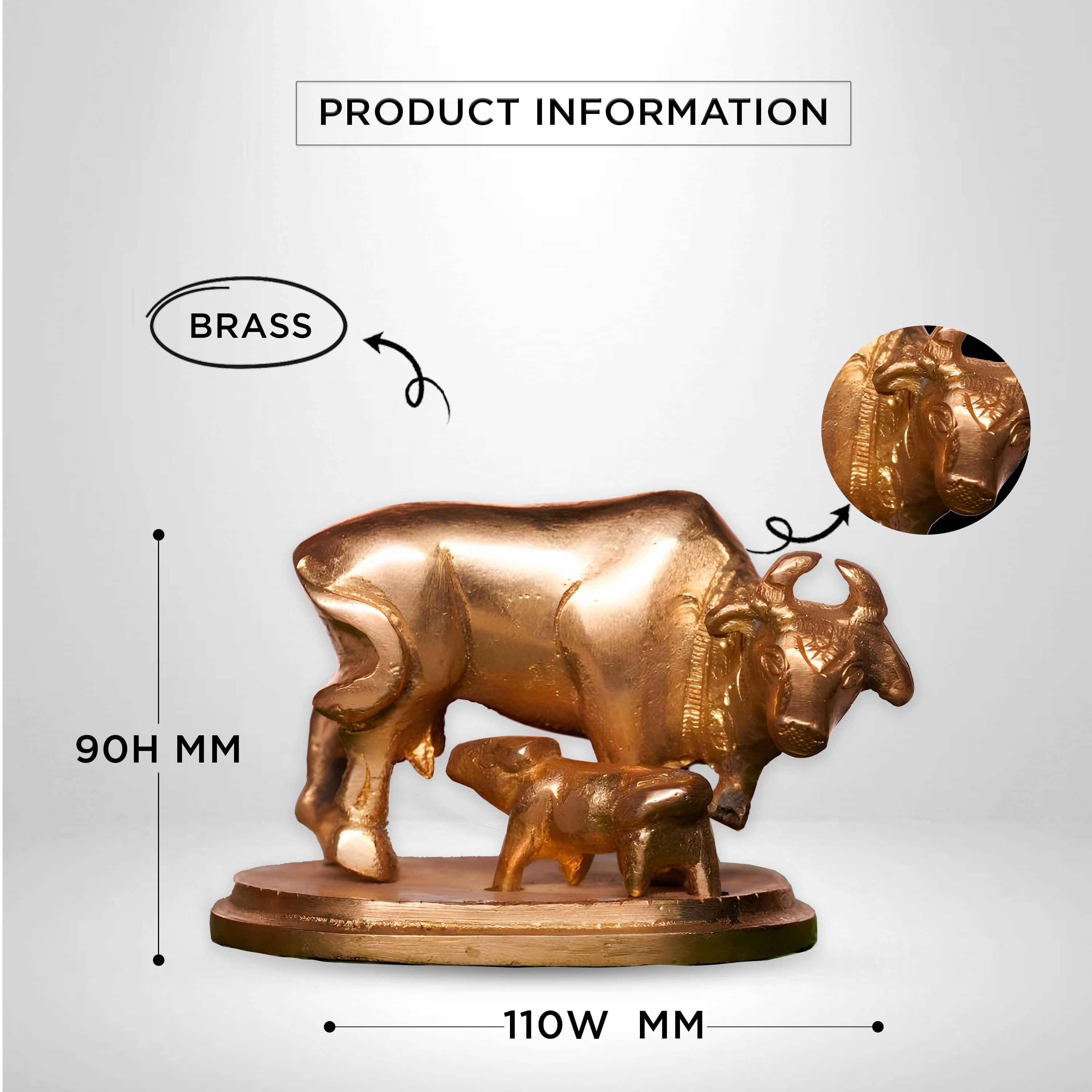 This beautifully crafted brass idol of Cow and Calf represents divine motherhood, purity, and nourishment. A perfect addition to your pooja room, home décor, or as a gift that blesses with peace and prosperity.
