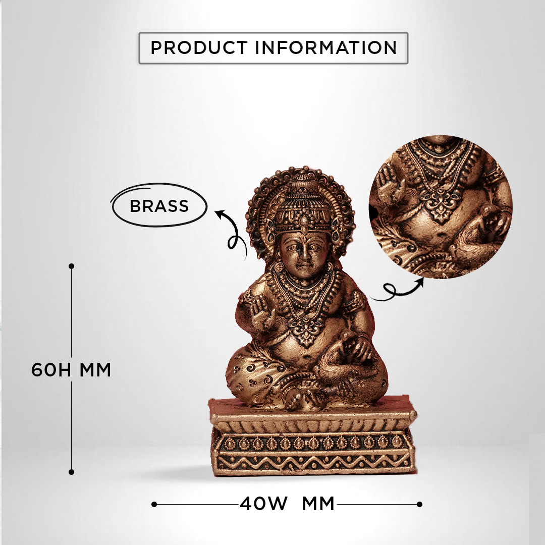 This finely handcrafted brass idol of Lord Kuber, the God of Wealth and Prosperity, is perfect for your home temple, office desk, or as a special gift. Known as the treasurer of the gods, Lord Kuber is believed to attract abundance and good fortune.