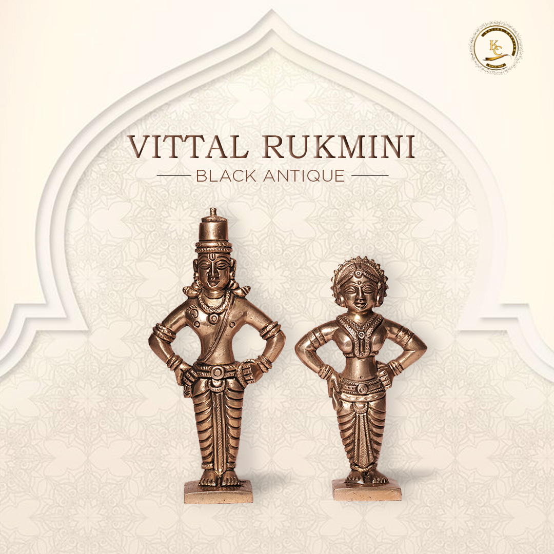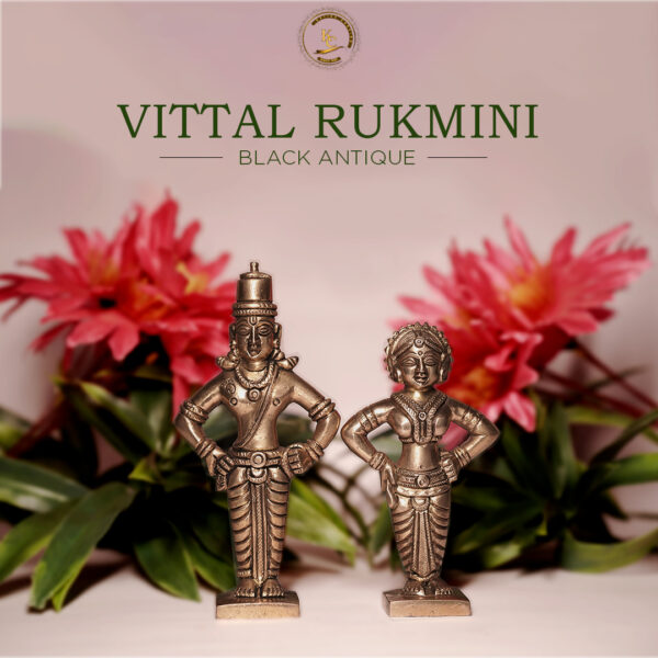 Handcrafted brass Vittal Rukmini idol in elegant black antique finish – a perfect blend of tradition and art.